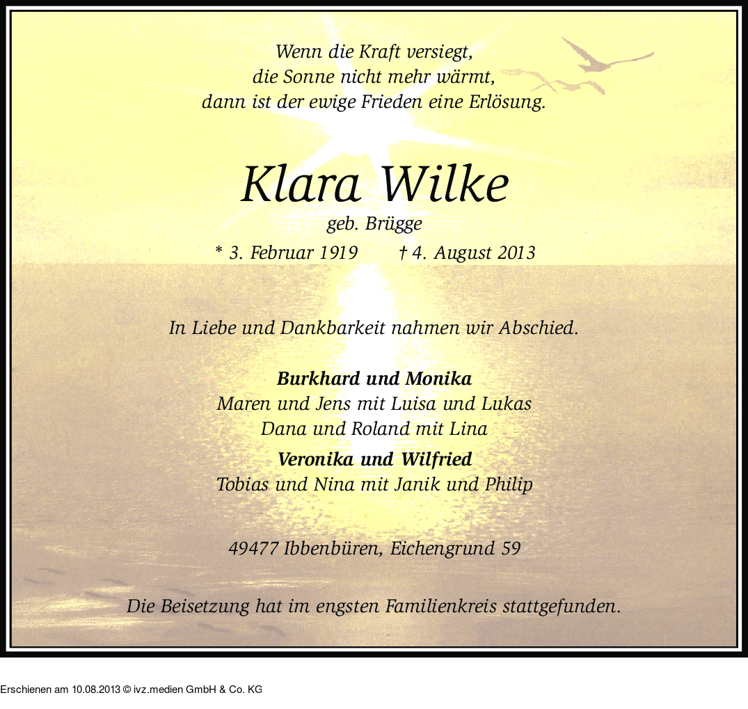 Anzeige vom 10.08.2013