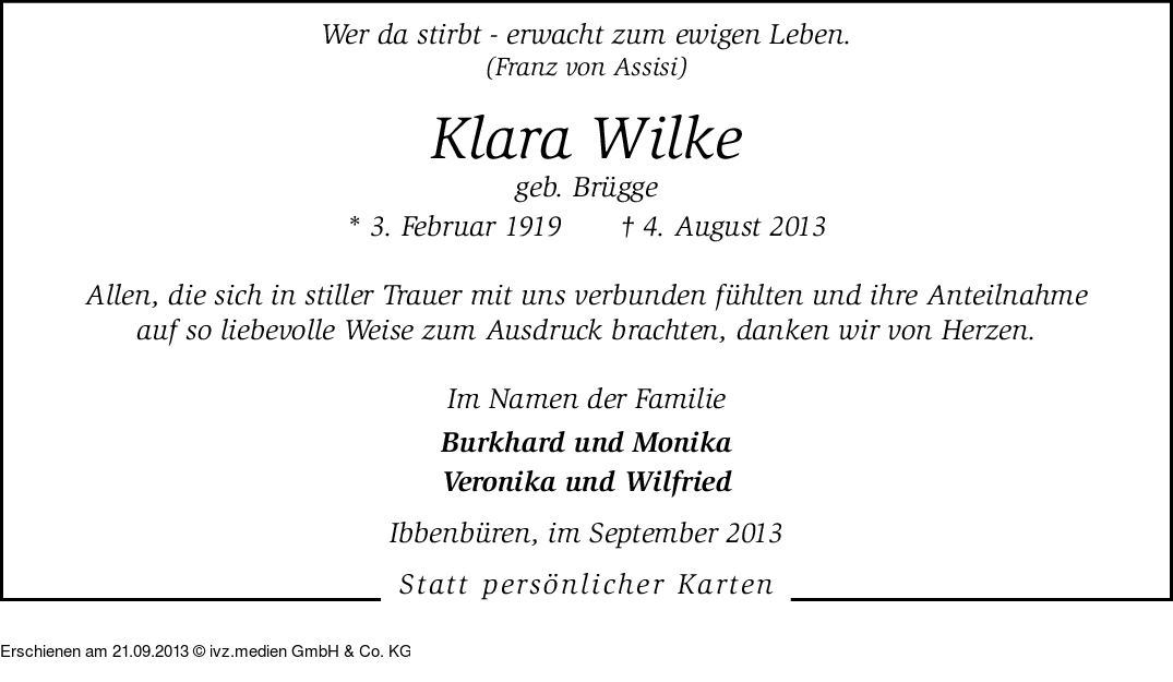 Anzeige vom 21.09.2013