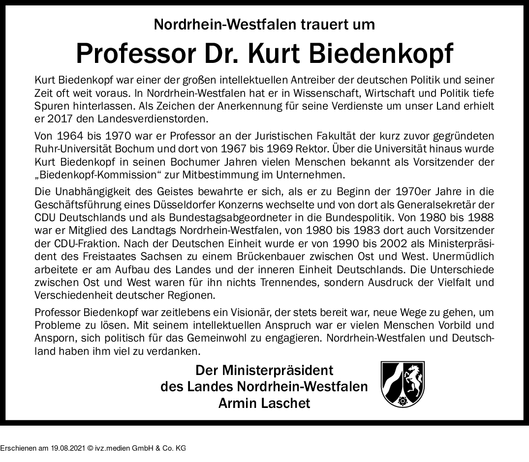 IVZ-Trauer | Kurt Biedenkopf