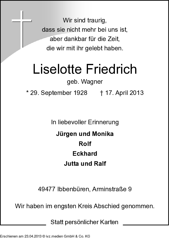 IVZ-Trauer | Liselotte Friedrich