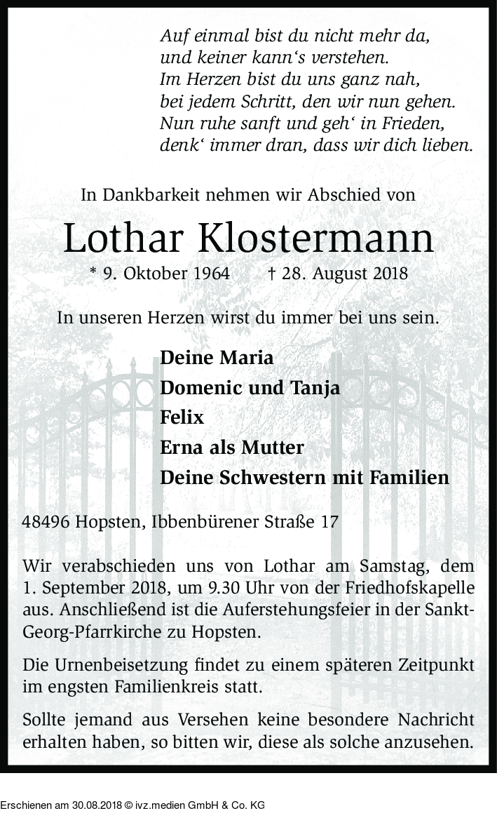 Anzeige vom 30.08.2018