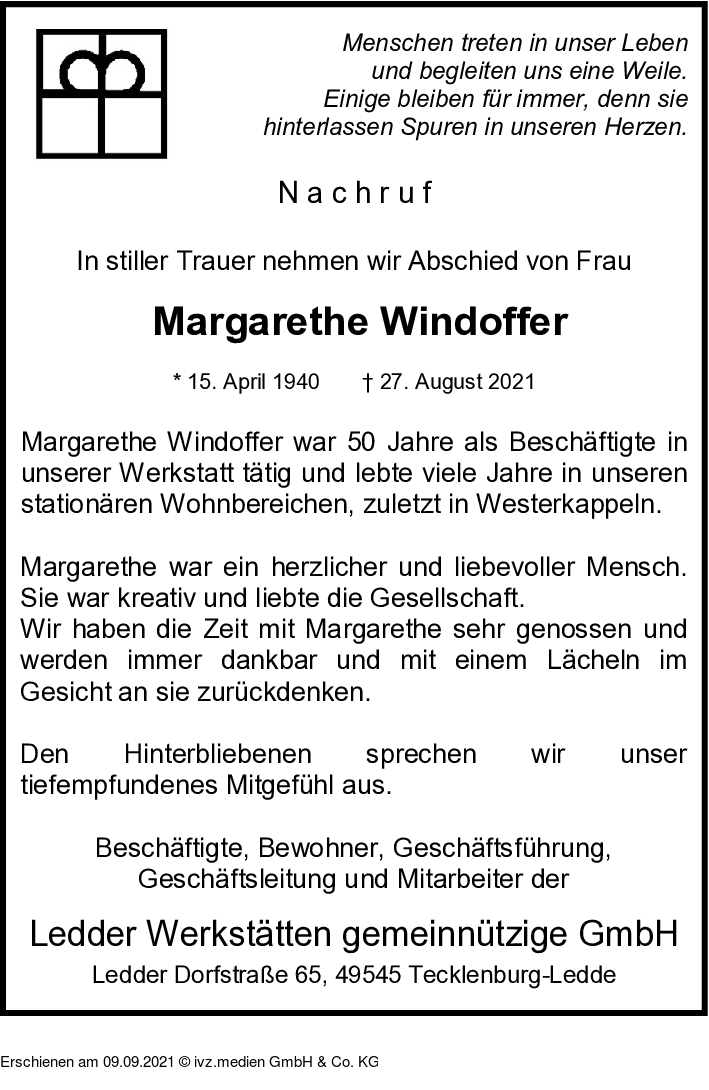 IVZ-Trauer | Margarethe Windoffer