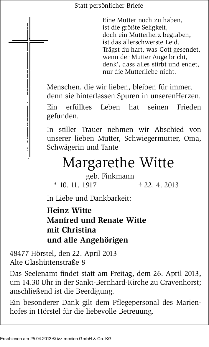 IVZ-Trauer | Margarethe Witte