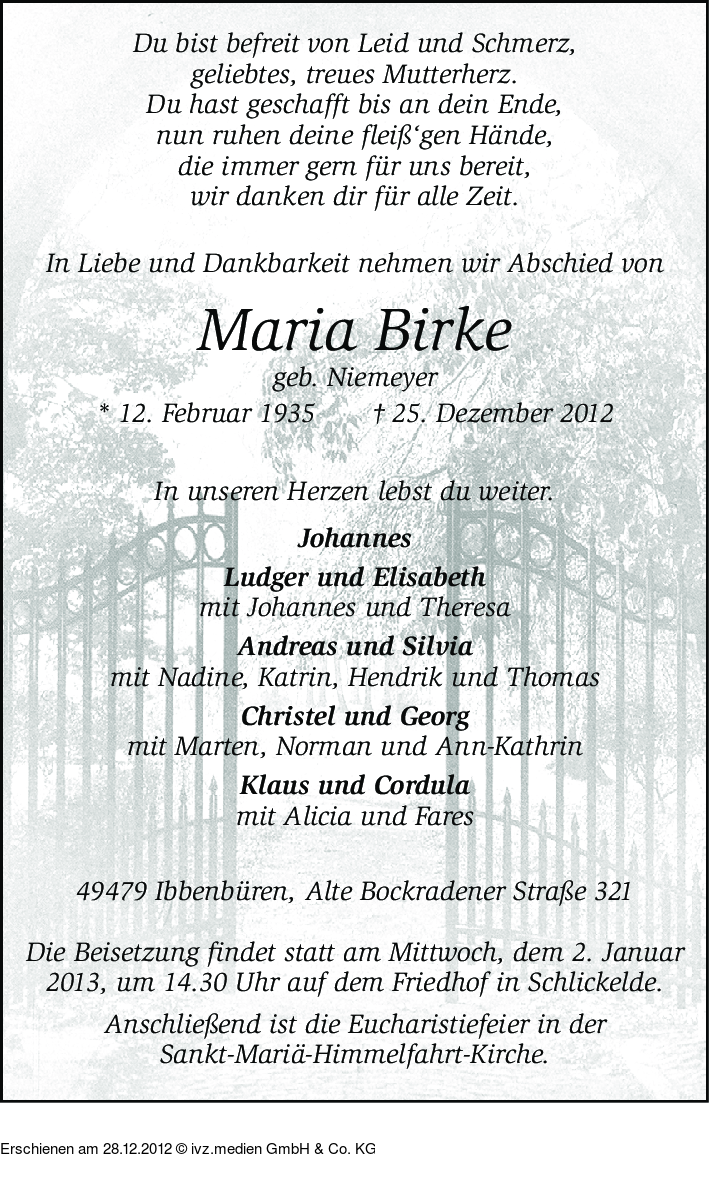 IVZ-Trauer | Maria Birke