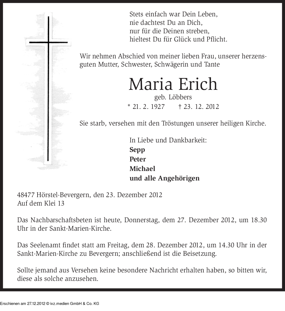 Anzeige vom 27.12.2012