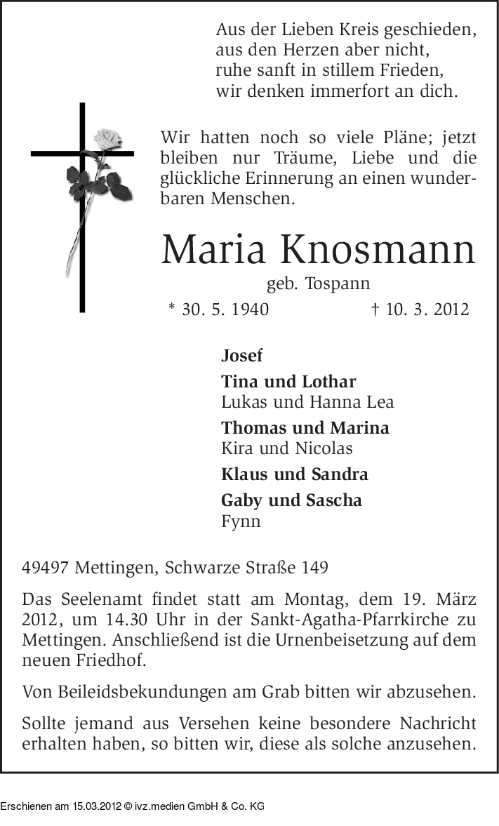 Anzeige vom 15.03.2012