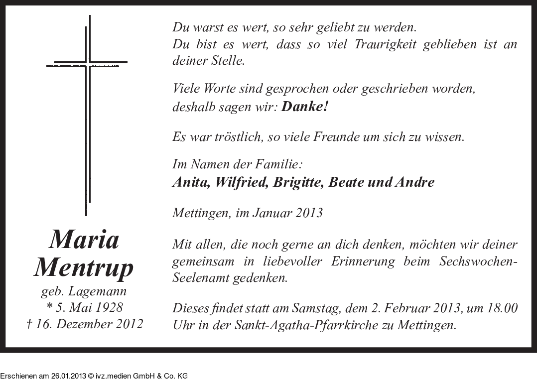 Anzeige vom 26.01.2013