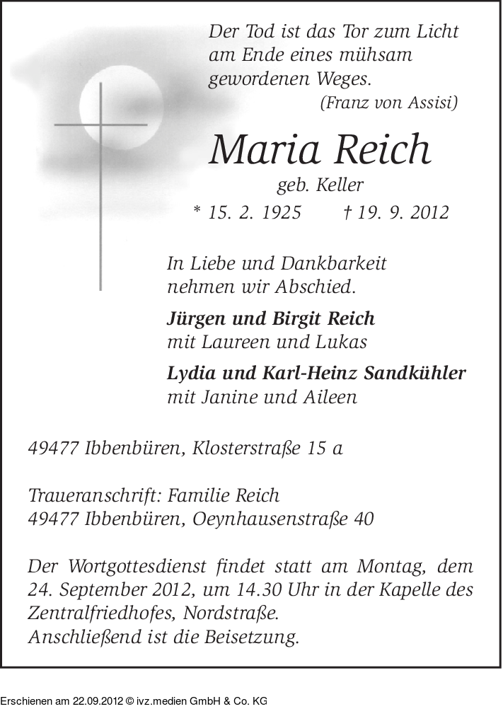 IVZ-Trauer | Maria Reich
