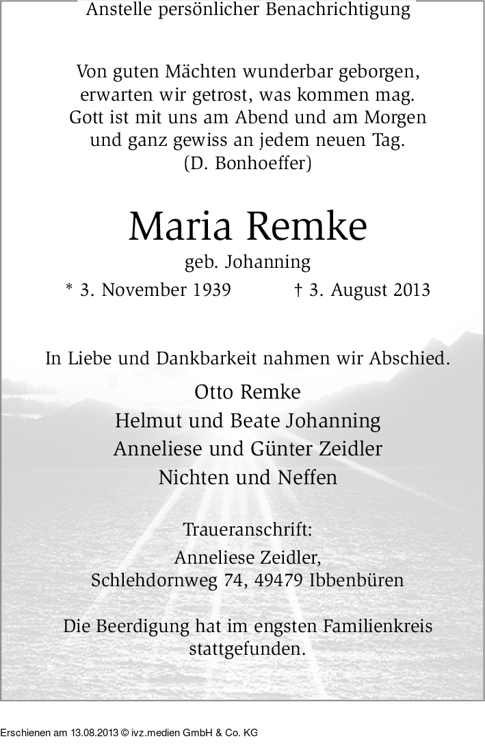 IVZ-Trauer | Maria Remke