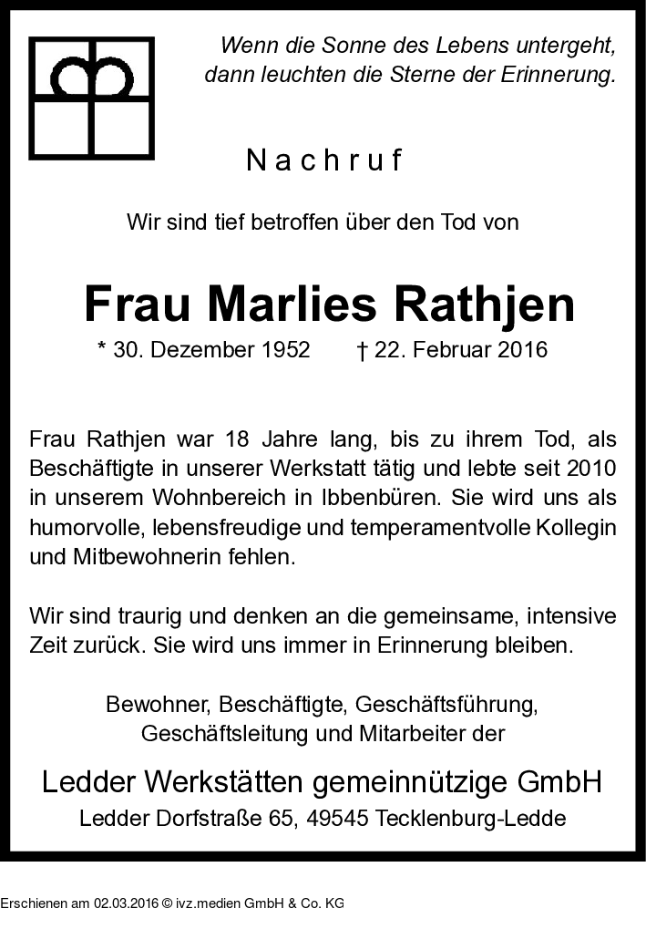 IVZ-Trauer | Marlies Rathjen