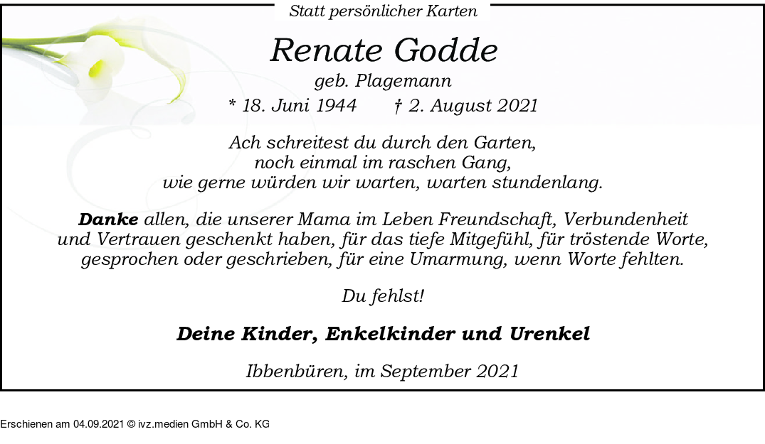 Anzeige vom 04.09.2021