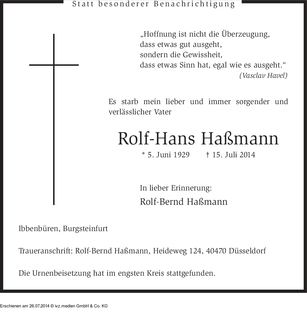 IVZ-Trauer | Rolf-Hans Haßmann