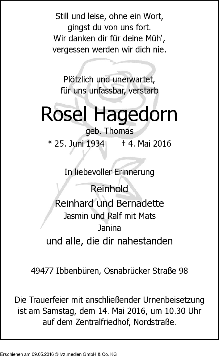 IVZ-Trauer | Rosel Hagedorn