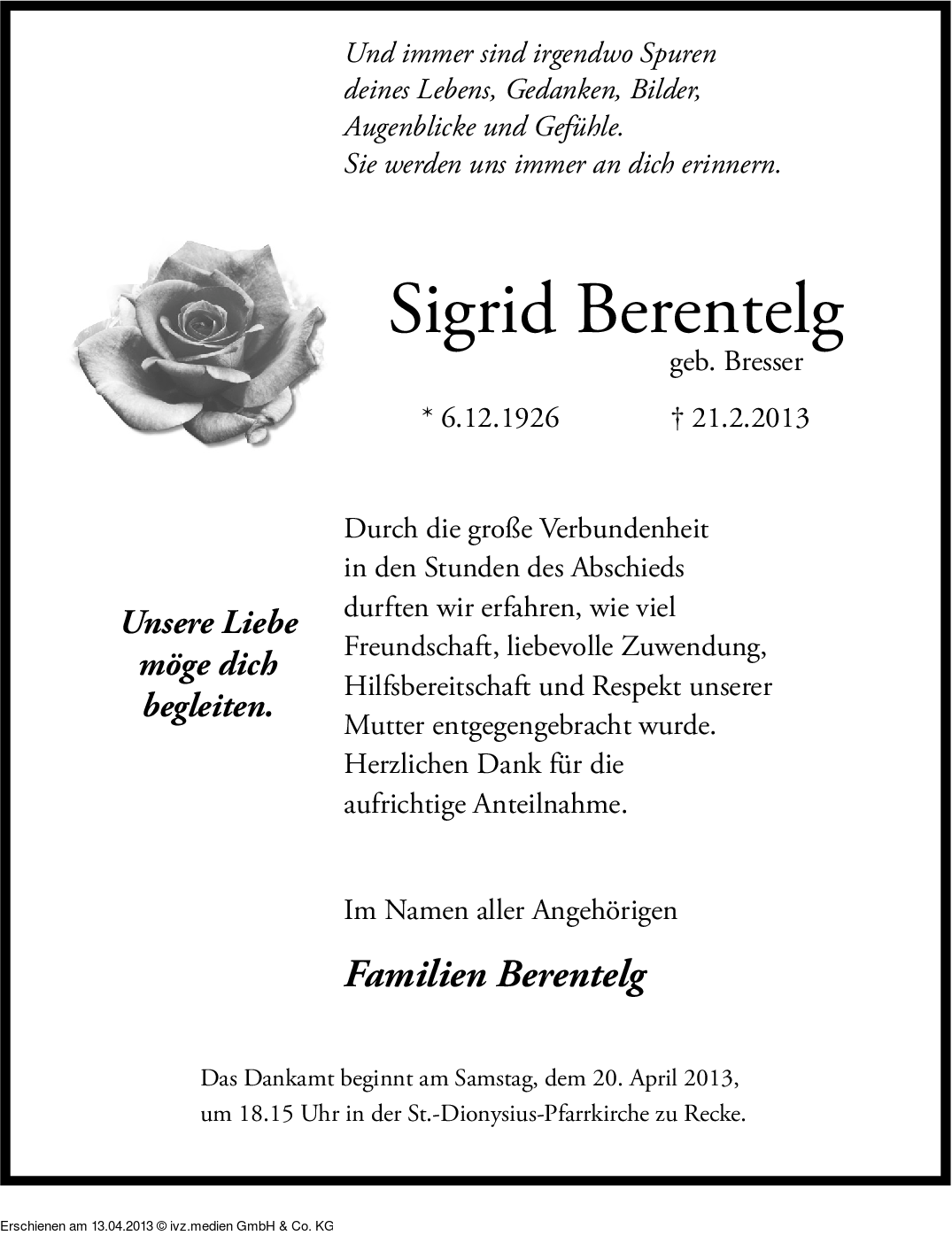 Anzeige vom 13.04.2013