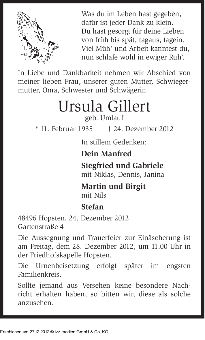 Anzeige vom 27.12.2012