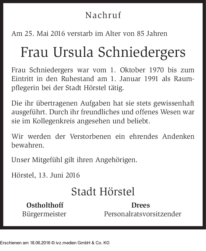 IVZ-Trauer | Ursula Schniedergers