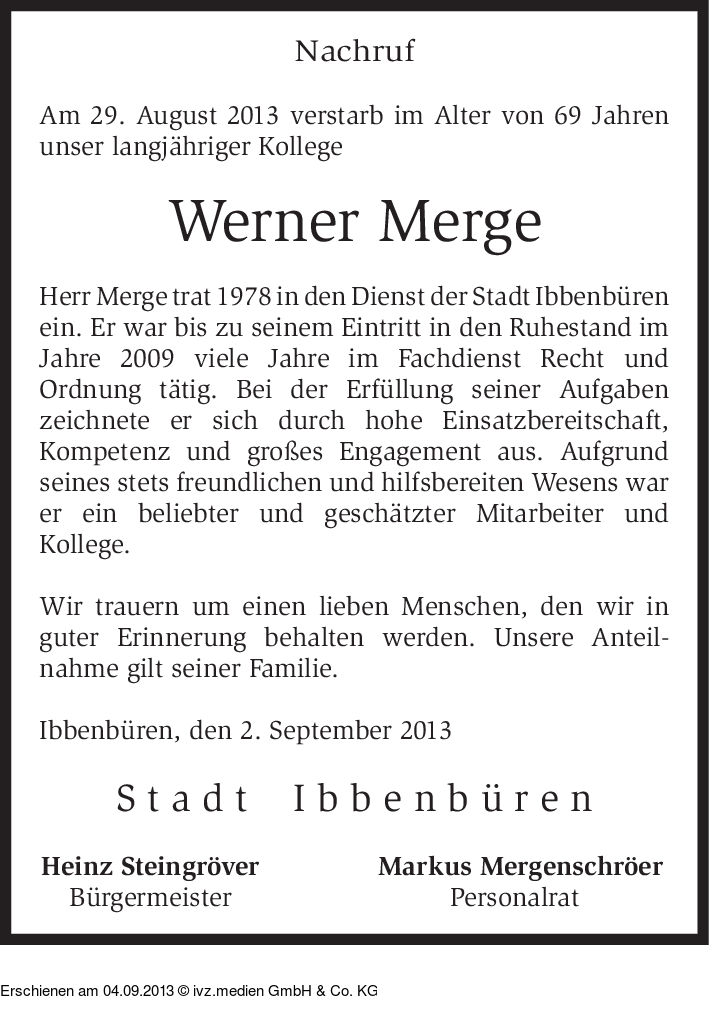 Anzeige vom 04.09.2013