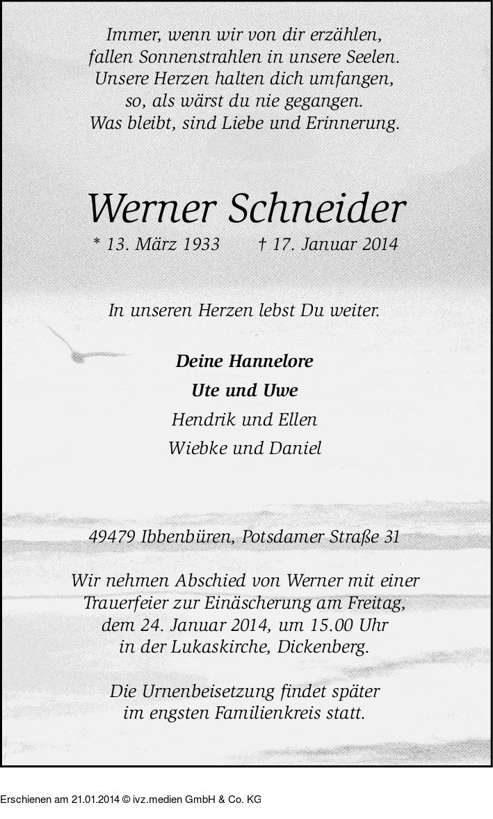 Anzeige vom 21.01.2014