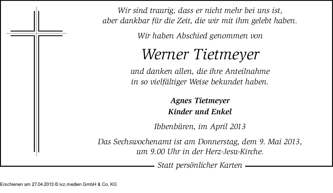 Anzeige vom 27.04.2013