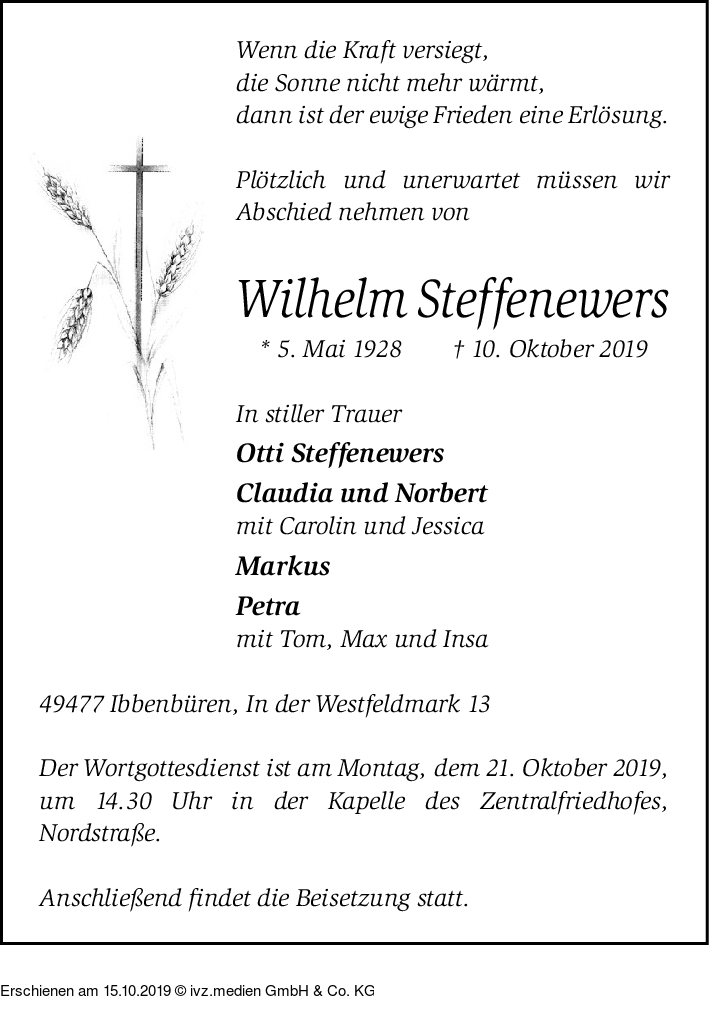 IVZ-Trauer | Wilhelm Steffenewers