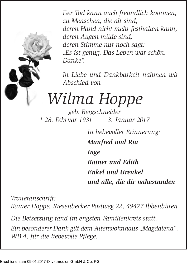 IVZ-Trauer | Wilma Hoppe