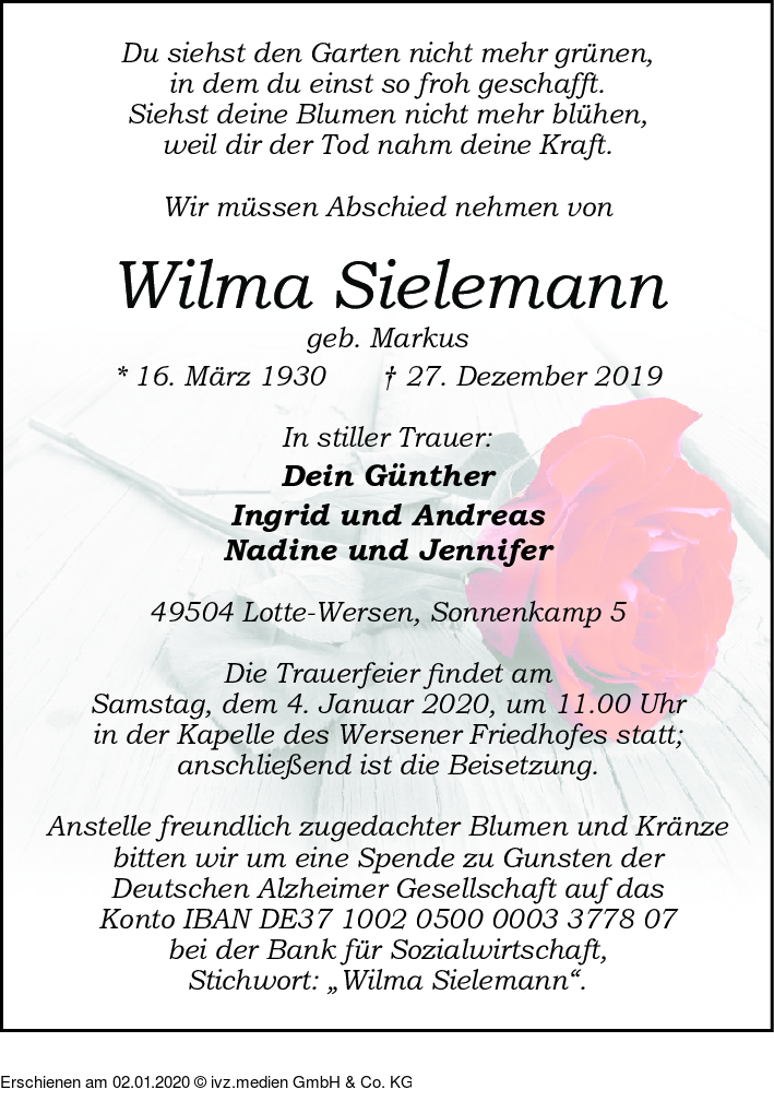 IVZ-Trauer | Wilma Sielemann